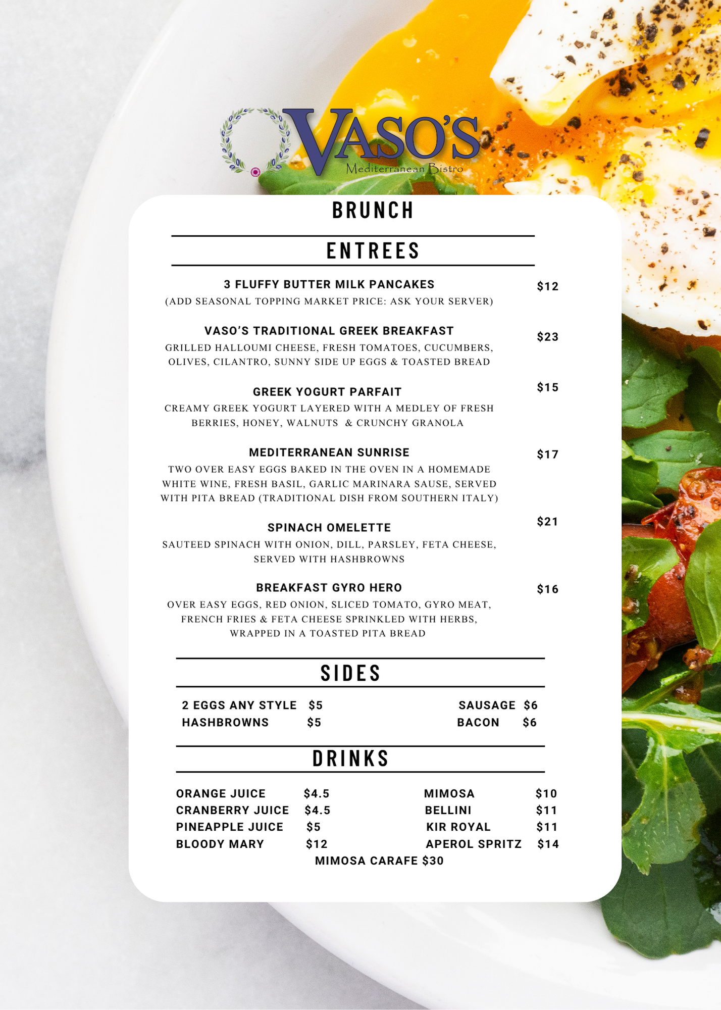 Gather with friends, sip a mimosa, and enjoy the flavors of the Mediterranean